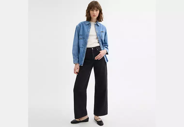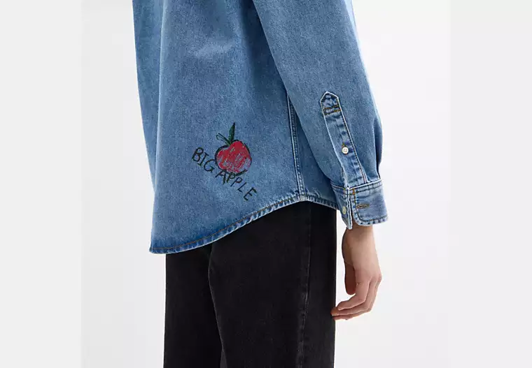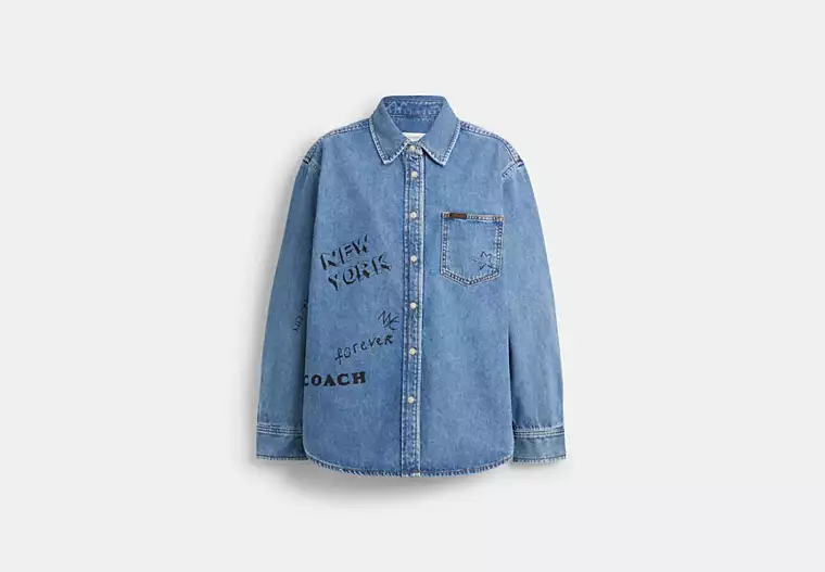 Denim shirt with sketch print