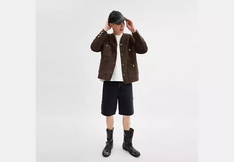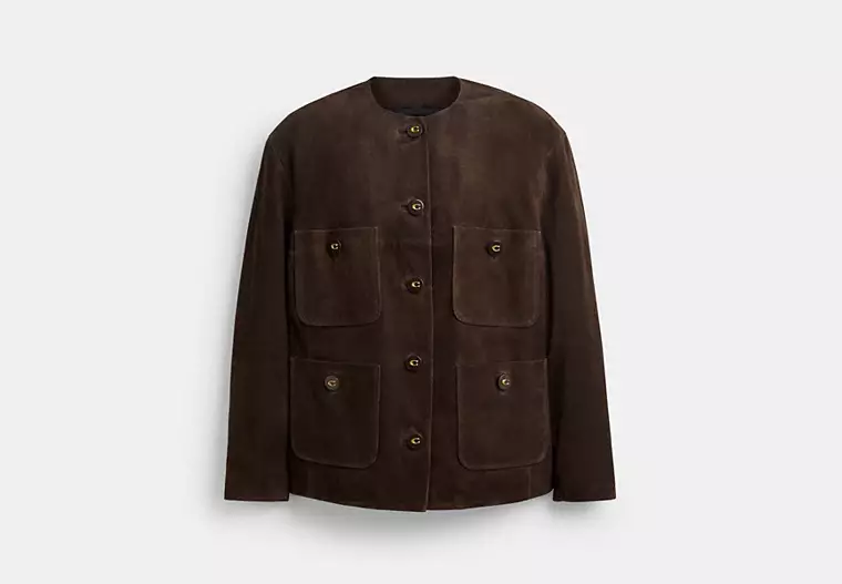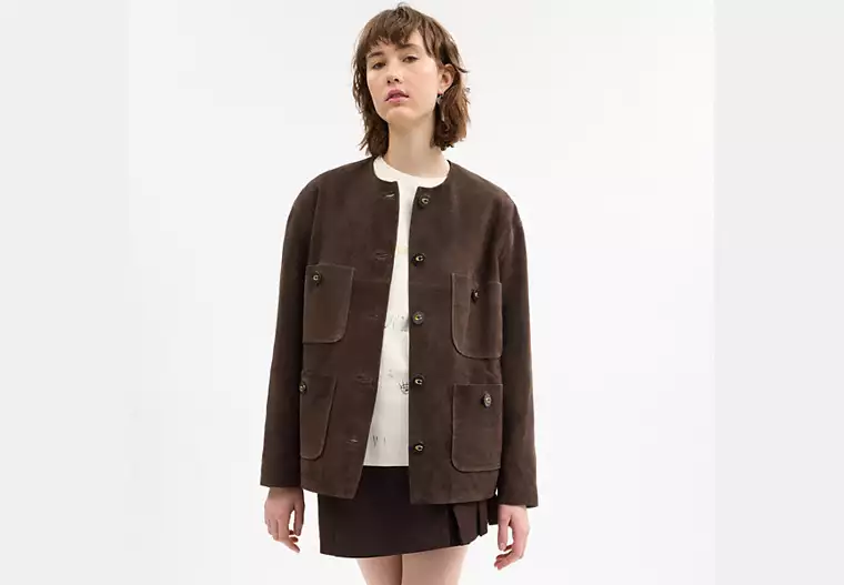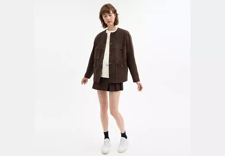 A modern take on a classic style, this four-pocket cardigan is crafted from luxuriously soft suede. Designed with an oversized, relaxed fit, it’s finished with enameled buttons with our signature detailing for a classic touch.